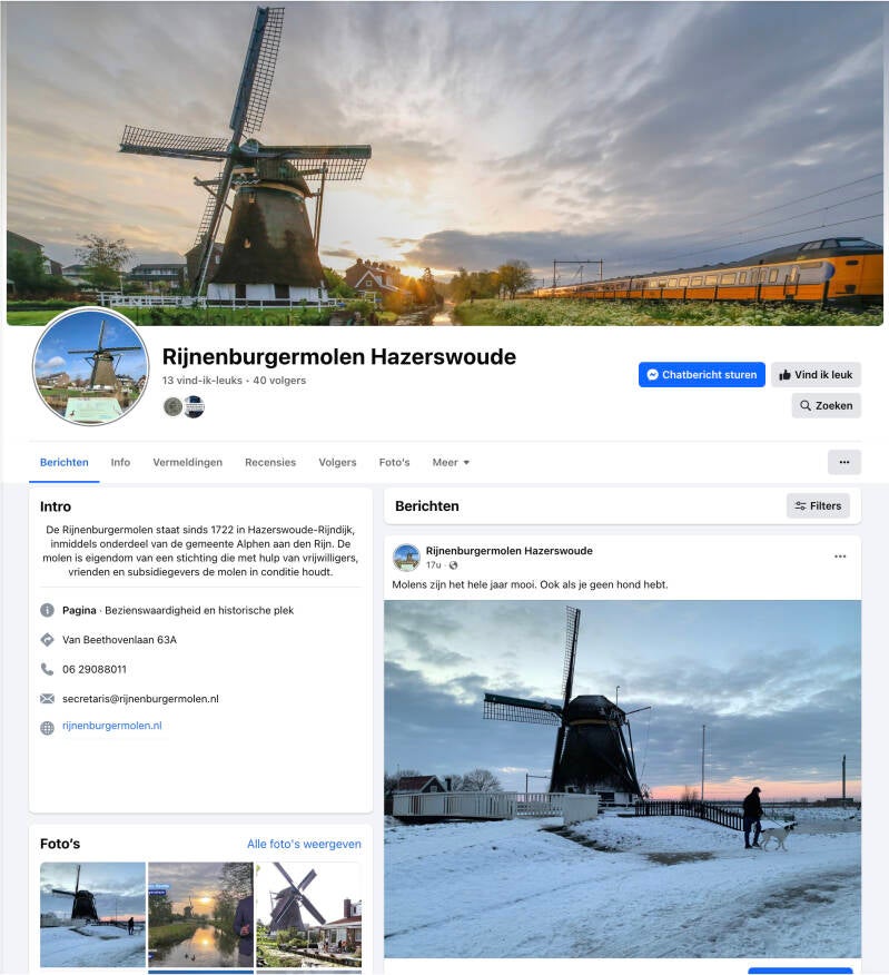 Rijnenburgermolen heeft een eigen pagina op Facebook
